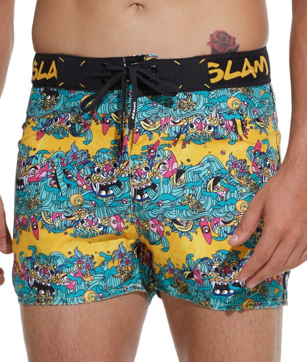 If you prefer mid-length boardies, this one is for you! The 32 length board shorts sit at the knee and feature V-fly opening, back pocket zip and lace up waistband. Our bright and playful Prints will have you standing out!