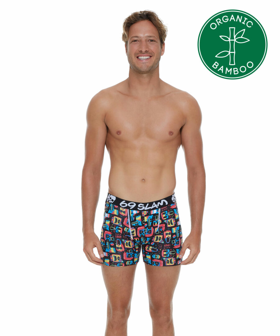 Soft, comfortable and eco-friendly. Feel super comfy with the Mid-length snug-fit printed boxer with rounded seams at the back for a more shapely bottom. Made of sustainably-sourced bamboo fibers mixed with cotton, it is not only super-soft, but also breathable and extremely comfortable.