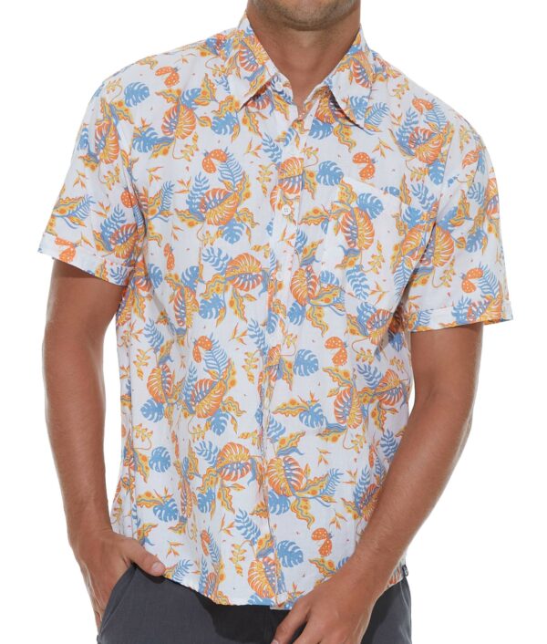 - Loose Slim fit, Narrow shoulder fit, Half buttoned over shirt style