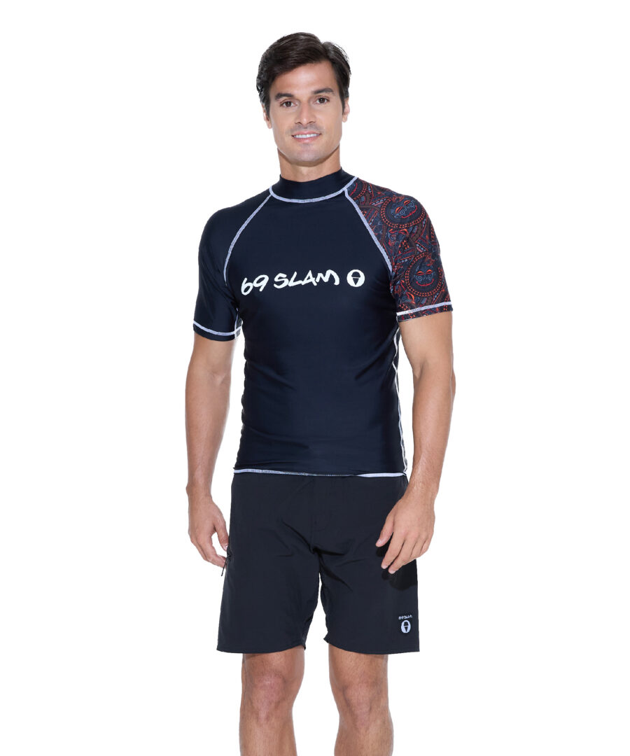 Dont let the sun stop you from having fun. Protect yourself from those harmful sun rays in the short sleeve Men’s Rash Vest. UPF 30% fabric / short sleeve raglan cut / contrast stitching / snug fit
