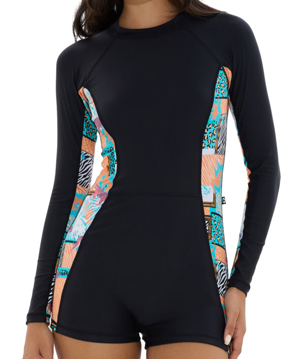 For active ladies who spend hours in the sun, the Bethany One Piece is perfect for beach sports or surfing. Featuring long sleeves, mock neck, center back zipper, and shorts for extra bum coverage.